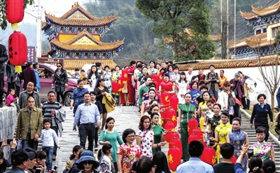 3月6日,明清古镇羊楼洞迎来了武汉汉绣旗袍艺术委员会组织的汉绣旗袍模特走秀展演团队,引来摄影爱好者、助兴喝彩的群众4000余人。