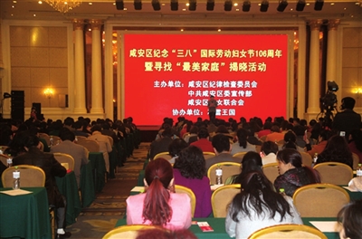 3月8日,咸安区纪委、区委宣传部、区妇联联合举行纪念“三八”国际劳动妇女节106周年暨寻找“最美家庭”揭晓活动,以表彰勤廉典型,传承良好家风。