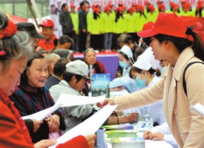 24日,温泉中辉国际广场,结核病专家正给市民免费把脉问诊。