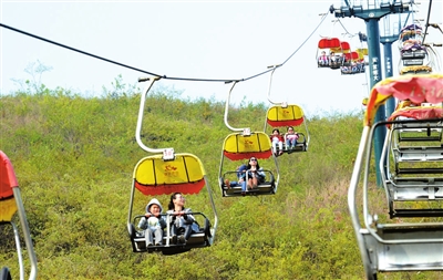 26日,崇阳县浪口景区人头攒动,来自咸宁、武汉等地的游客乘索道登上燕子垭,俯瞰形似太极图的浪口十里田园风光。