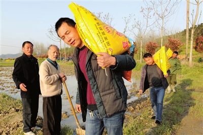 ▲3月30日,赤壁柳山湖镇腊里山村贫困户王富贵收到一份特殊的礼物,老支书程才林及村里党员们送来了化肥和犁田用具。王富贵家因病丧失了劳动能力,正在春耕备耕的节骨眼上,村里党员主动扛起他家春播重担。 记者 张大乐 通讯员 宋勇华 摄