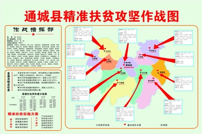 挂图作战。县、乡、村三级层层签订《精准扶贫工作责任状》,明确减贫任务,层层加压。各级根据实际,分别制定《精准扶贫攻坚作战图》,明确牵头领导、参战单位、目标任务、脱贫措施。