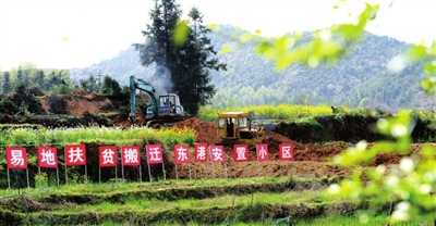在隽水镇东港村精准扶贫易地搬迁安置小区,推土机机器轰鸣,挖掘机忙碌不停,小区建设呈现一派热火朝天的景象。站在精准扶贫巨幅广告牌下,村支书聂昌华介绍,他们村计划投资800万元,建立约30亩的移民集中安置小区,建筑面积6120平方,可解决搬迁户53户,其中首批搬迁户29户。全村19个村民小组,578户,2568人,耕地面积1954亩,山地面积5500亩,是一个典型的山区村,是省定的贫困村,去年,精准识别贫困户164户、316人,其中重点贫困户61户、180人。