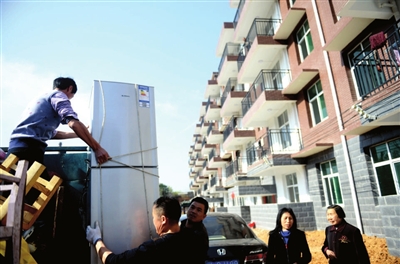 3月28日,在崇阳县石城镇扶贫搬迁集中安置点,当地塔坳村民在喜迁新居。当天,石城镇扶贫搬迁集中安置点建成投入使用,来自该镇118户易地扶贫搬迁户和灾后重建户陆续搬入新居。