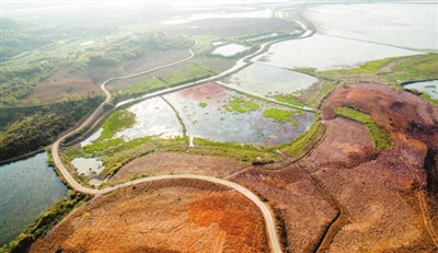 近日,鸟瞰嘉鱼陆溪镇虎山村新开发的油茶产业基地,大气磅礴,近2000亩流转土地已种上了油茶新苗,并铺上薄膜。