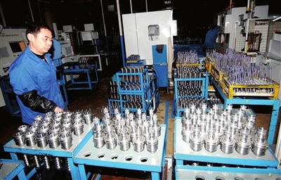 2日,湖北三环汽车方向机有限公司员工在检验产品质量。