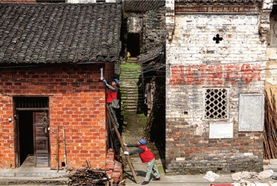 “今天的任务是更换古民居里旧的配电电线,虽然是扫尾工作,但大家要注意施工安全,有情况随时汇报……”