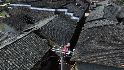 “村里的配电线路还是上世纪90年代初换的,现在大部分都已经破旧不堪了。”杆下,负责安全监管的刘遵加跟我们聊起了这次村里农网改造的缘由和计划,他是这次古民居电网改造的负责人。