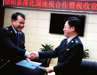 二是要强化宣传推进。政策出台之后,人就是决定因素,在经济新常态下,特别是经济持续下行,企业都面临压力,适应和接受新的税收体制和征管方式有一个过程,容易产生一些敏感想法。因此,宣传工作显得尤为重要。国地两税要组织学习,让工作人员熟练掌握要领,规范操作程序。两家要通过媒体宣传、印发宣传册和上门讲解等方式对征管对象加大宣传力度,让纳税人了解两税深度合作的内容、征管体制的变动以及政策调整后的征管方式方法,避免产生误区,抵触纳税。