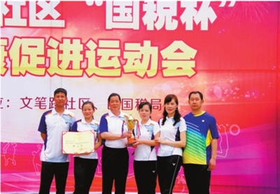 4月12日,区运管所职工在参加咸安区文笔路社区举办的“国税杯”健康促进运动会上,以“拼博向上、勇争第一”的运管风采,在趣味抬轿项目比赛中获得团体第二名。