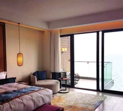 酒店一半都凌空建在湖面上,客房分为abc三区,每个房间都享有湖景,并带观景阳台。太平湖水面辽阔清澈,特别是早晨起来的时候湖面水气氤氲很有意境。
