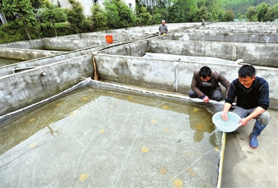 7日,嘉鱼县官桥镇阴山村,在当地有着“青蛙王子”美名的邓志刚正在基地里查看青蛙苗繁育情况。