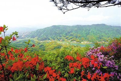 昨日,通城县百丈潭源头之一的金山上杜鹃花开得“粉粉”烈烈。