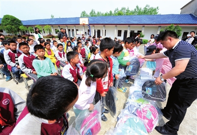 4月28日,咸安区马桥镇任窝小学,朱顺意等49名贫困生收到了价值近万元的学习用品等。