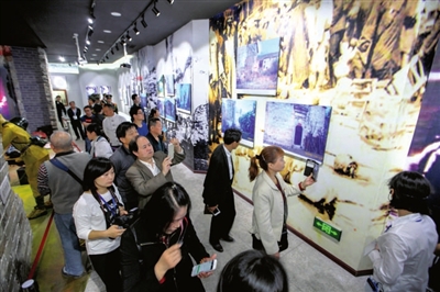 “血火岁月”专题展览的内容包括三·一八惨案的图片、实物,死难者名单、家属证词、幸存者照片以及被日军烧毁的宅落图片。看着其间逼真的再现场景,今年76岁的万裕才老人数度哽咽,他说,父亲是从当年惨案的死人堆里爬出来的,而这些画面,自己从小就听父亲描述过……