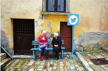 意大利中部一座小镇远离都市,几乎没有网络覆盖。但在艺术家的创意下,该小镇很快出现了许多新奇的事物:供人们休憩闲聊的“推特”长凳、供人们沟通交流的谷歌酒吧、展示小镇新闻的“脸谱”公告牌等等。
