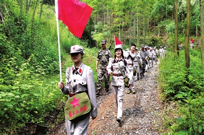 “红军行”活动中,全体学员身穿红军服装,沿着革命先烈走过的路,徒步穿越高山峡谷,既探访红军洞,感受当年红军征程之艰难,又倾听“血洒金峰”的战斗故事,以实地实景接受深刻的党性教育和革命精神洗礼。