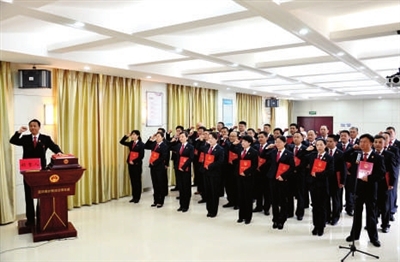 “我宣誓:忠于祖国,忠于人民,忠于宪法和法律……”日前,赤壁市人民法院首批入额的34名法官身着法袍,面向国旗,向宪法庄严宣誓。通讯员 舍予 范丹摄