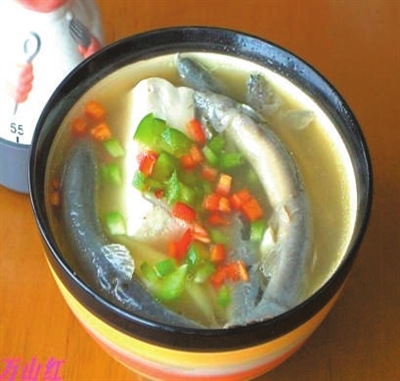 我第一次在餐桌上看到这道菜,很为之惊叹:炖得松软的豆腐里,露出一条泥鳅尾巴,这样的菜品我从来没有见到过。