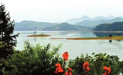 金桂湖又名南川水库,水面8000多亩,99个岛屿星罗棋布,群山林深竹茂,景色秀美如画。
