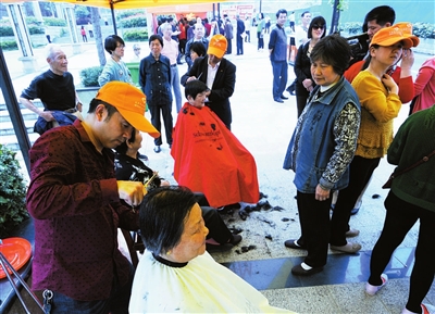 文笔路社区组织了志愿者服务活动。在活动现场,义诊咨询、免费理发、免费照相,三个区域挤满了社区群众。来自辖区尚一特理发店的理发师饶财文、新发现理发店的理发师樊德民,早上8点多到感到现场开始忙碌。两个多小时为40多位居民免费理发。在免费照相区域,市国税局摄影协会的5名志愿者分工合作,拍照、打印照片、过塑,忙得不亦乐乎。