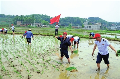 5月24日,市国税局团委组织30余名青年干部,前往该局“三万”帮扶点通山县大路乡杨狮坑村,帮助农户插秧忙春耕。 通讯员 程俊 汪蓉 摄