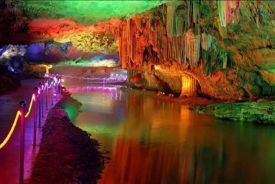 隐水洞是湖北省首个地质公园,溶洞全长5180米,平均高30米。被誉为“洞天华中——中华天洞”和“神秘的地下明珠宫殿”。