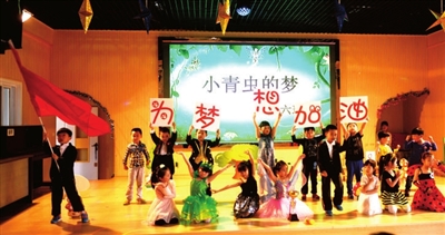 ①儿童节前夕,市直机关幼儿园小朋友在表演节目《小青虫的梦》。