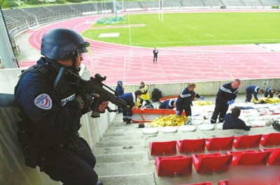 不仅如此,在城中球迷聚集的地方,还将设置观察点,有神枪手在高处观察人群,一旦发现有恐怖分子想要发动袭击,将会将他们击毙。比赛前,巡警、特殊部队,以及直升机将会一刻不停地保卫着这座古老的城市。
