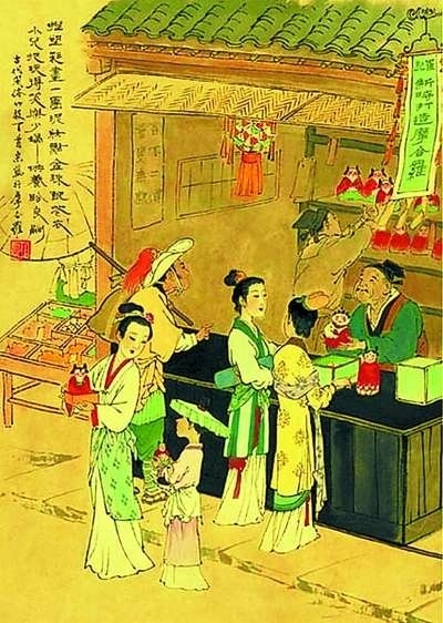 明清时的家长给孩子买玩具,就如给孩子添新衣裳一样。除到固定的玩具市场上去买,还会“赶集”或“赶会”,到定期或不定期的集市或庙会上逛逛,那里总少不了玩具摊。