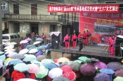 二是重视基地建设,建设非遗场馆。我市大力建设非遗传承基地、展示馆和传习所,为传承人举行宣传和传承活动提供固定的平台。我市现有鄂南文化陈列馆和通山县非物质文化遗产保护中心展示厅等综合展厅,通山县九宫山熊氏木雕厂展厅、钱六姐纪念馆等专题展厅;赵李桥砖茶制作技艺传承基地和通羊镇衢潭村通山山鼓传承基地建设成效明显,被省文化厅评为“湖北省非物质文化遗产传承示范基地”。
