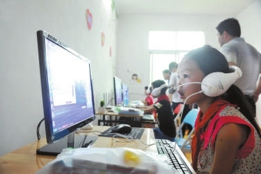 图②:1日,通山县燕厦乡马桥小学“留守儿童之家”正式启用,学生们正通过网络视频,与远在外地务工的父母“面对面”聊天。