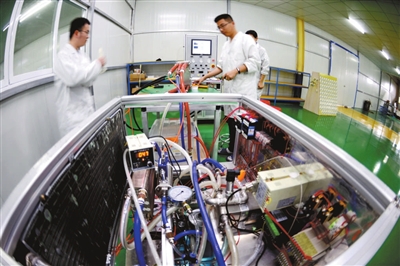 3日,武汉喜玛拉雅光电(咸宁)有限公司技术员在检测产品质量。