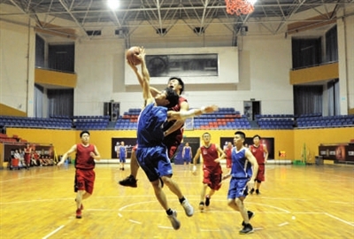 15日,金叶体育馆,运动员正在场上激烈争抢。据了解,这是我市首届运动会职工类篮球比赛暨第二届市直机关篮球比赛的首轮比赛。当天,咸宁市第一届运动会职工类足球比赛暨2016年“我爱足球”咸宁市第二届市直机关足球比赛也在市体育中心开赛。记者 夏正锋 摄