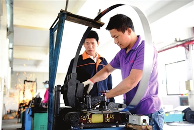 15日,湖北(赤壁)三盛刀锯有限公司员工在精心制作环形刀带。该公司位于赤壁经济开发区中伙光谷产业园,总投资6000万元,占地面积30亩,是一家集开发、生产、销售于一体的专业化刀锯公司。