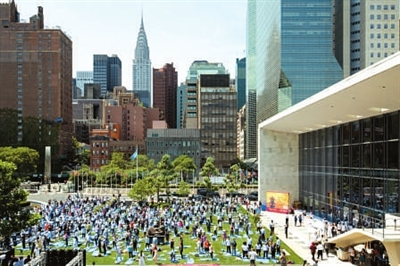 6月21日,在位于纽约的联合国总部,各国外交官以及联合国职员练习瑜伽,庆祝“国际瑜伽日”。2014年联合国确立每年6月21日为国际瑜伽日。 据新华社
