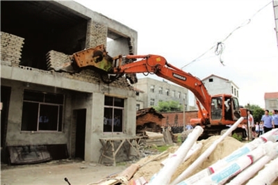6月15日,嘉鱼县“两违”指挥部组织县公安局、规划局等单位的140名执法队人员,联合对鱼岳镇方家庄村一处2层260平米的住宅进行强制拆除。