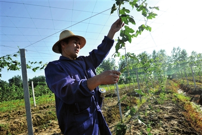 17日,赤壁市柳山湖镇宝塔山中药材种植基地,管理人员正在对今年种下去的天花粉进行整枝。
