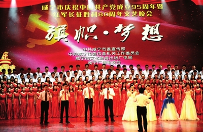 晚会开始后,李建明、丁小强等市委领导登台和大家一起合唱《没有共产党就没有新中国》。整场晚会分为《觉醒奋斗》、《发展崛起》、《筑梦复兴》三个篇章,精彩纷呈的文艺节目,重温了党的光辉历程,缅怀了党的丰功伟绩,讴歌了中华民族实现伟大复兴中国梦的奋斗历程,激发了大家努力建设“小康、创新、绿色、开放、幸福”咸宁的热情。