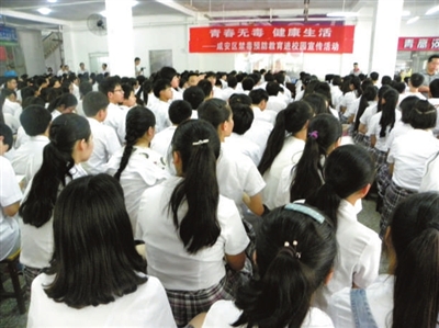 为提高广大青少年学生对毒品危害的认识,在“6·26国际禁毒日”来临之际,咸安区司法局、公安局、教育局联手开展了禁毒预防教育进校园活动。此次活动的主题是“青春无毒、健康生活”。活动中,区公安局禁毒大队的民警详细介绍了咸安的毒情以及毒品的种类和危害,同时,运用生动的案例和血的事实引导同学们识毒、防毒、正确拒毒。随后,两名戒毒青年也用自己的亲身经历,真诚告诫和呼吁同学们要珍惜青春,珍爱生命,远离毒品。