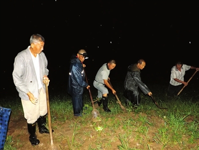 长江簰洲湾镇陈家坊段,干部群众夜巡江堤。