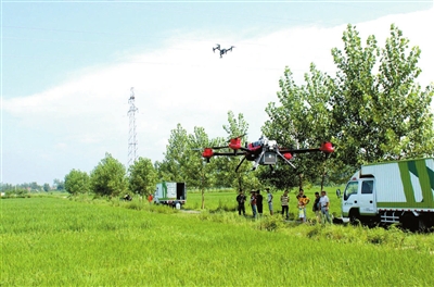 图二:植保专业合作社深入田间开展机防服务。 通讯员 赤轩摄