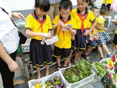 本报讯记者马丽报道:15日,市实验小学一位老师在朋友圈里晒出了一组照片:学生们在实验小学校园的“开心农场”里采摘蔬菜、到街头义卖蔬菜。这样的暑假社会实践活动,受到学生和家长的欢迎。