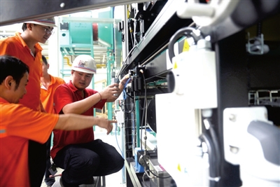 20日,湖北奥瑞金包装有限公司技术员工在调试生产设备。