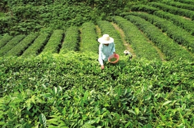 洪灾过后,通城县霞光茶业员工在采茶。该公司有茶园面积861亩,年销售有机茶收入2960万元。2008年通过有机茶资格认证,产品畅销全国各地。通讯员 小易摄