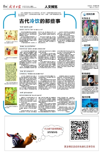 由此可见,冷饮的发明人应为先秦时周王室的“浆人”。实际上,冷饮制作技术的发明人应该更早,可惜无文字记载。