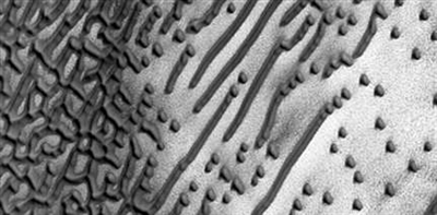 美国航空航天局(NASA)近日公布了一张神秘的火星暗色沙丘照片,这些形状奇怪的沙丘看起来就像摩斯密码。这张照片是由火星勘测轨道飞行器搭载的HiRISE高分辨相机在今年2月拍摄的。