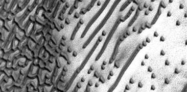 据外媒报道,美国航空航天局(NASA)近日公布了一张神秘的火星暗色沙丘照片,这些形状奇怪的沙丘看起来就像摩斯密码。这张照片是由火星勘测轨道飞行器搭载的HiRISE高分辨相机在今年2月拍摄的。