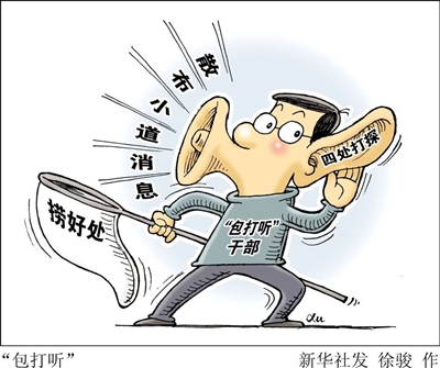 官场“包打听”由来已久,打听的领域也不仅限于纪检案情。有的四处打探组织人事动向,有的喜好收集领导的背景传闻,有的则热衷揣测上级决策部署。所有“包打听”都乐于开个“路边社”,架个“小喇叭”,散布小道消息。这些“包打听”们为了更早更多地获取“有价值”的信息,上窜下跳、四处串联,闹得小道消息满天飞。