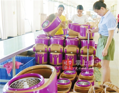 昨日,湖北丽尔家日用品公司员工正在检测3D鹿皮巾立体旋转拖把。